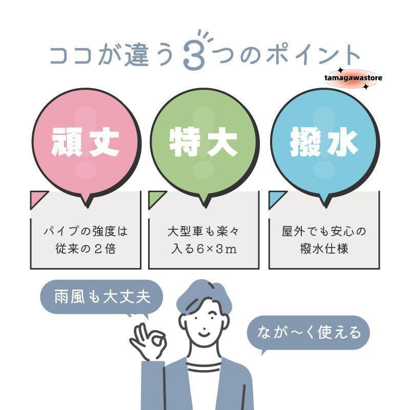 長方形 タープテント 大型 強化フレーム 3 m×6 m ワンタッチ 頑丈 大型テント