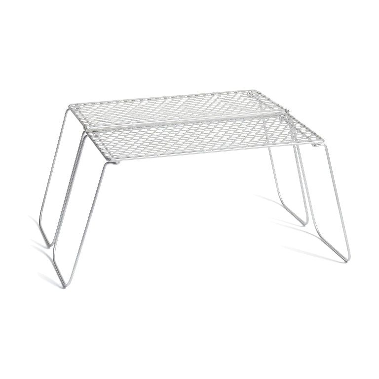 グリル面にこだわっています。折り畳み式のグリル。グリル面はハニカム状のフラットな作りになっており、使用後のメンテナンスを楽にするだけでなくミニテーブルとしても使用できます。難しい機構は使用せず、シンプルに折りたたんで収納するシステムで故障、破損のリスクを極力減らしています。シンプルながらバーゴらしさあふれるグリルです。サイズ/使用時:グリル面:196×209mm、高さ:114mm、収納時:196×101×31mm 重量/105g 素材/チタン