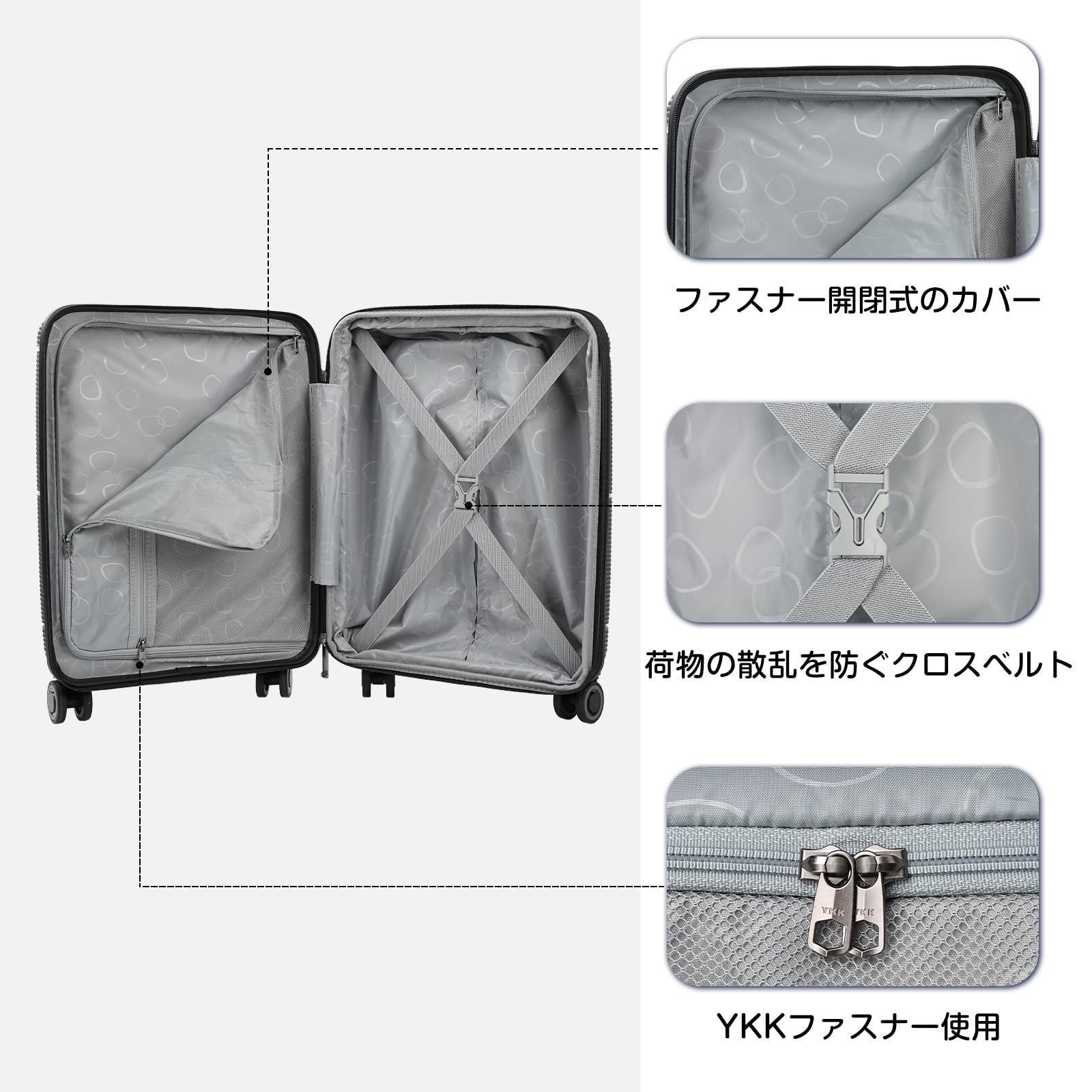 [タビトラ] スーツケース キャリーケース 機内持込 トップオープン フロントオープン 拡張ファスナー 大容量 PC収納 TSAロック 超軽量 旅行 出張 ビジネス 多機能 ブラック