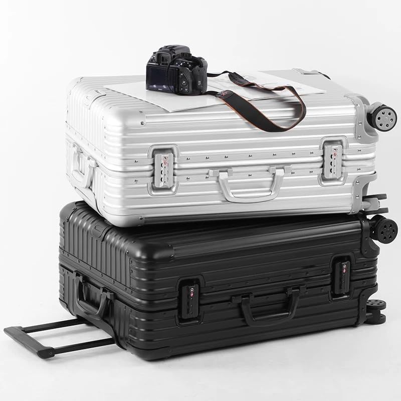 【全アルミニウム合金ボディ+アルミニウムフレーム】このアルミ製スーツケースは、 全アルミニウム合金ボディとアルミニウムフレームを備えており、洗練されたクールな外観を持っています。金属素材により強度と耐久性が確保され、長寿命を実現しています。金属のボディが高級感を演出し、優れた選択肢となります。有名ブランドの製品と比較すると、数倍もの価格差がありながら、丈夫で軽量であるという点で優れています。ご注意ください:ご注意ください: 商品を受け取ったら、暗証番号を設定する前に、ロックの背面に「変更レバー」があるかどうかをご確認ください。 変更レバーがない場合 → スーツケースに付属の説明書を見て設定してください。 変更レバーがある場合 → 商品ページの画像にある手順に従って設定してください。