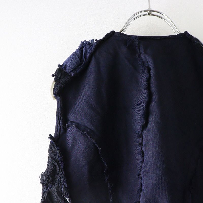 【品名】2005SS コムコムコムデギャルソン COMME des GARCONS ポリ縮 フラワーモチーフベスト M|ネイビー トップス 羽織り