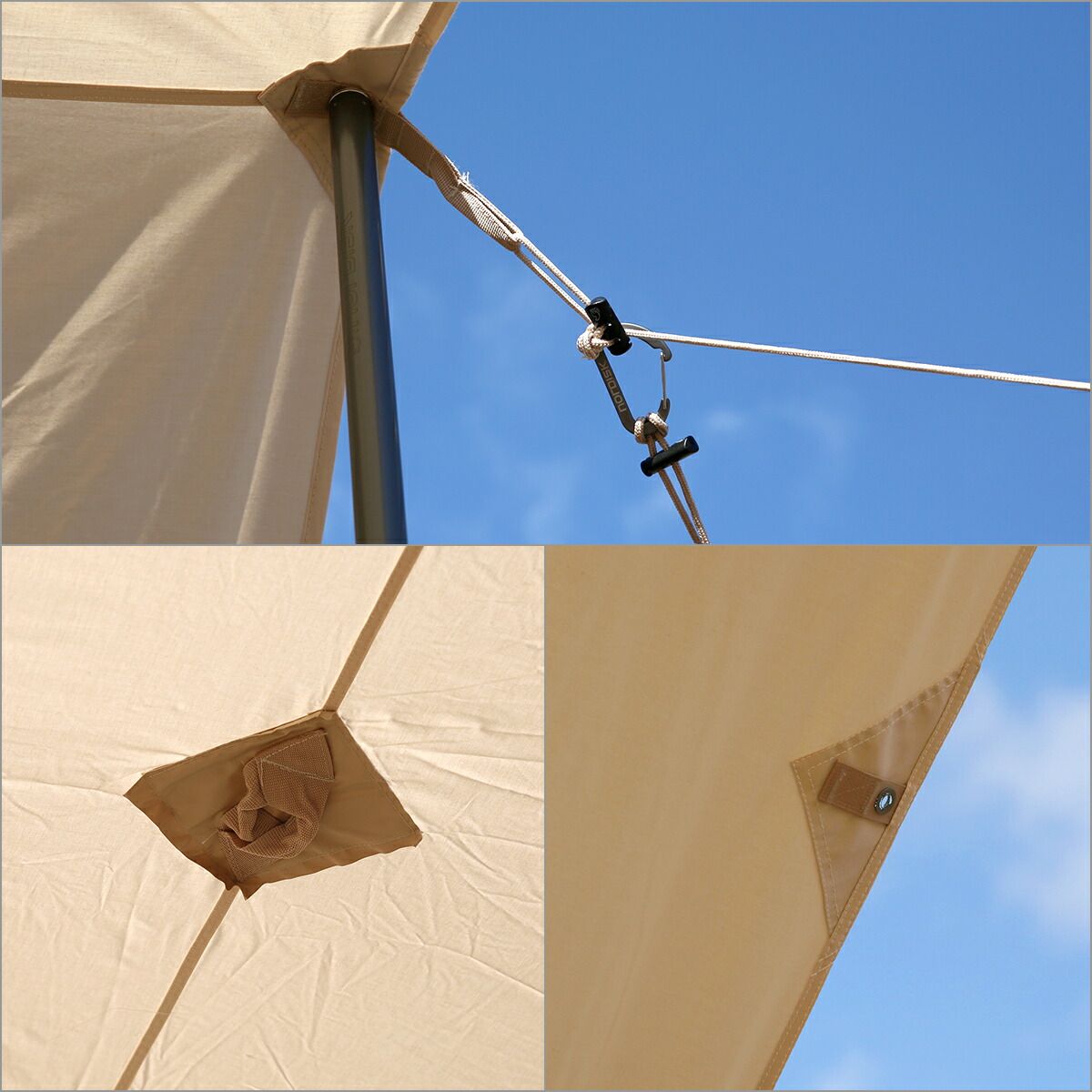 ・アルミ製フックシステムで素早く取り付け可能なガイラインが付属
