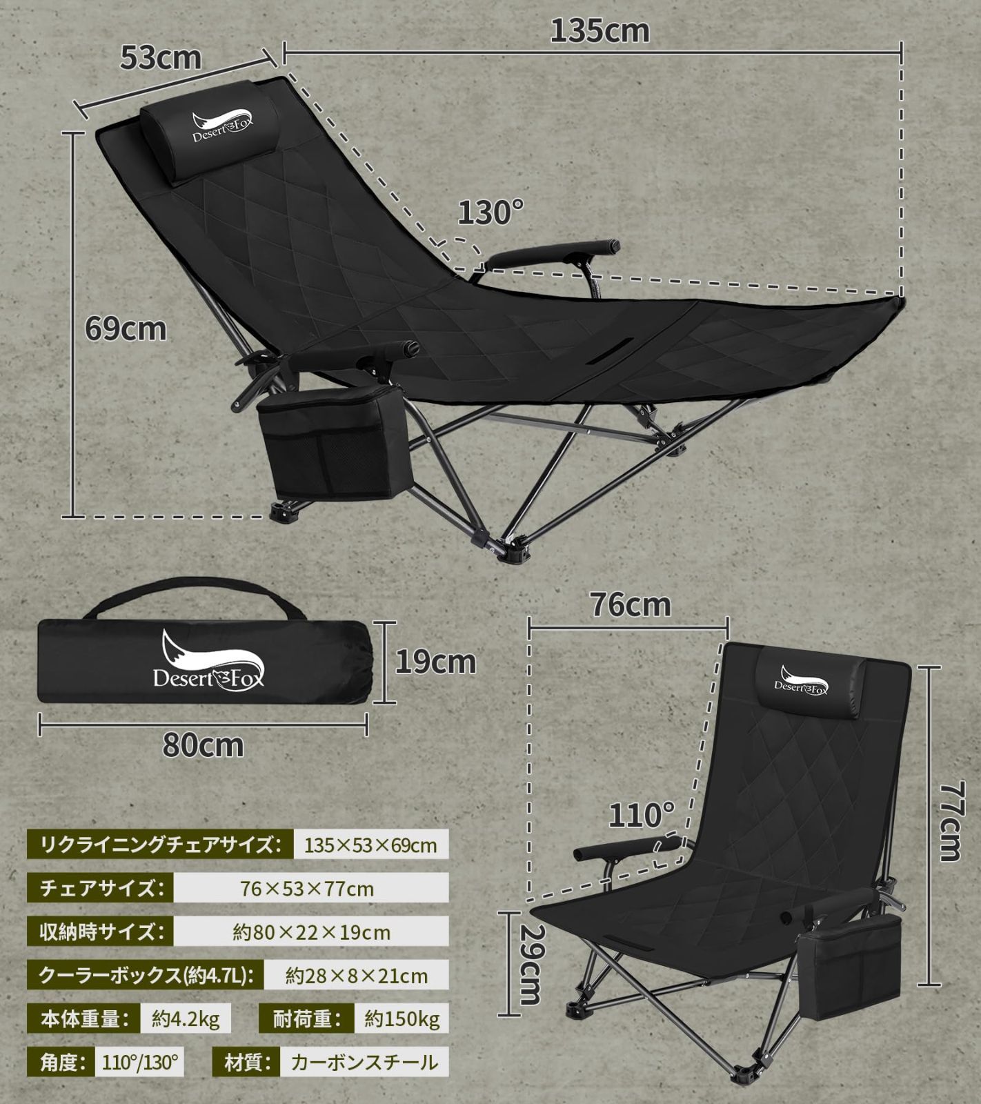 ?【追加功能】:枕+サイドポケット+肘掛け+弾性メッシュバッグ◆【枕】DesertFox:ヘッドレストは可動式です。ヘッドレストは取り外しが可能で、腰当てとしても利用可能です。特にリクライニングチェアとして使用する際は、腰部をより良く保護し、より快適になります。【抜群なサイドポケット】タオル、スマホなどの収納に活用できます。◆【肘掛け付き】左右に2つのアームレストがあり、両手と肩に十分なサポートを提供し、よりリラックスできます。◆【弾性メッシュバッグ付き】:背もたれの後ろに大きな弾性メッシュバッグが付いており、本、メガネケース、タオルなどの持ち物をスッキリ収納できます!