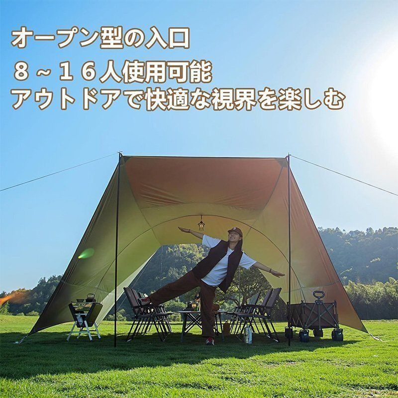 タープ トンネルタープ アウトドア キャンプキャノピー アーチ型 超大型8-16人用 日焼け防止 大空間 通気防水 ピクニック 収納袋付き