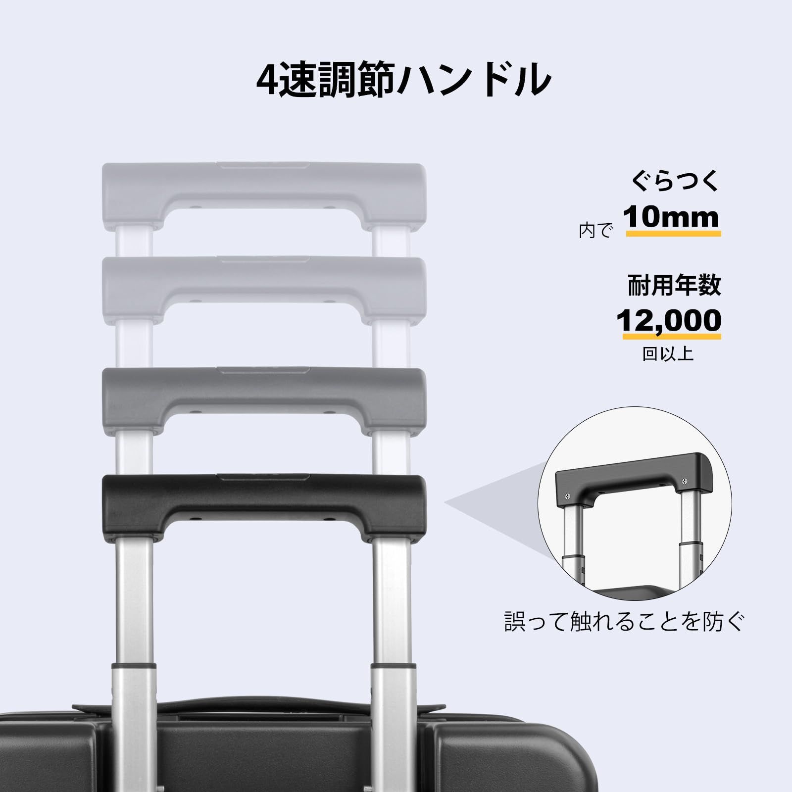 【高品質アクセサリ】スクラッチに強く ブランドのホイールを使用したホイール付きスーツケースで、とても静かで操作しやすく。スーツケース 機内持ち込みには滑らかで補強された防爆ファスナー逆コイルを採用し、ファスナーの破裂を防止している。これもTsaのスーツケースで、安全で便利で、伸縮ハンドルは4段に調整できる、