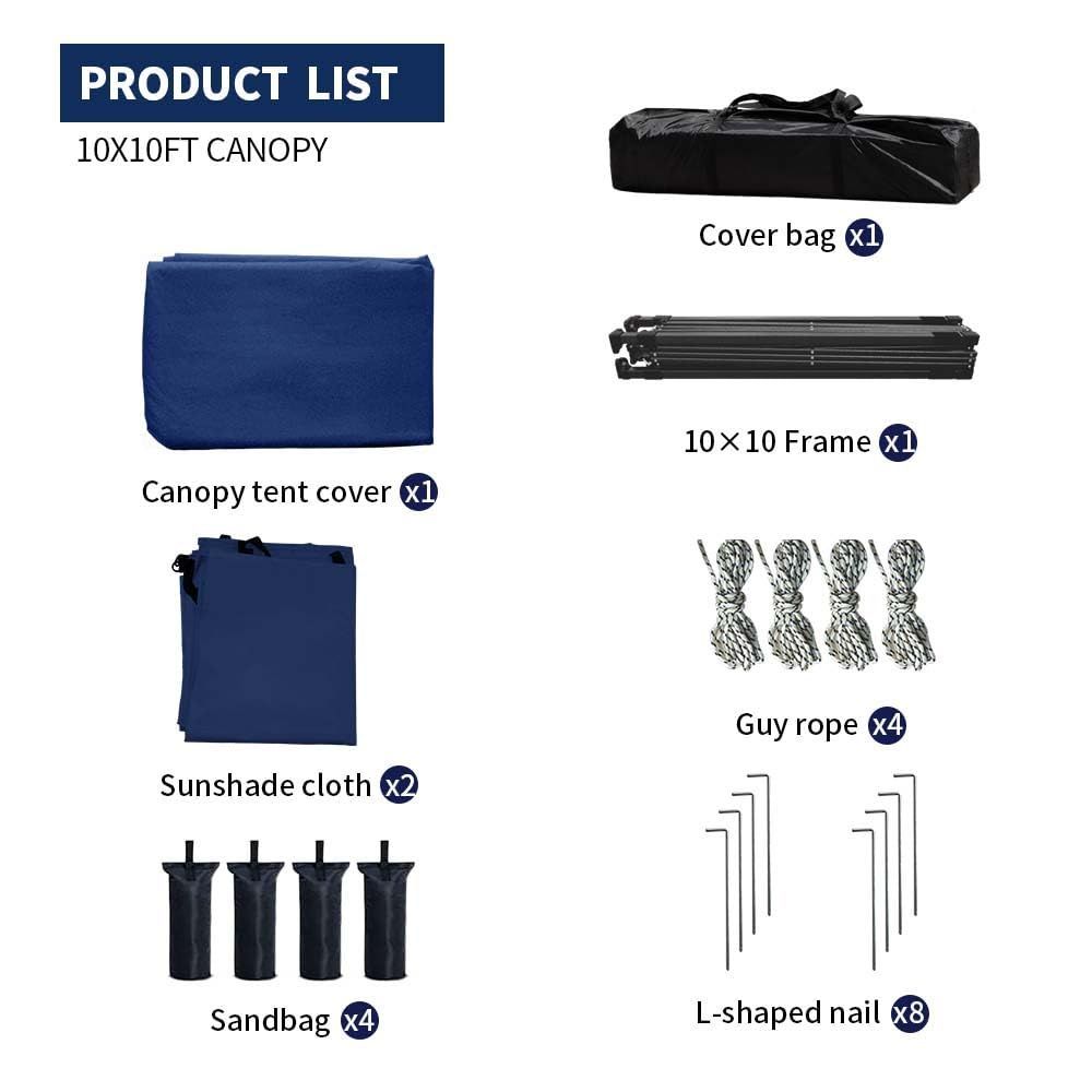 10x10 ポップアップキャノピーテント サイドウォール2つ付き 防水シェードキャノピー サンドバッグ付き アウトドアキャノピーテント キャンプ ビーチパーティー 裏庭用 ネイビーブルー