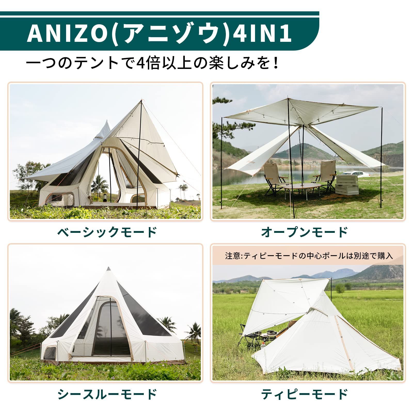 【4in1・四つのモードを楽しめる】二重層構造のテントとして、テント本体と外層キャノピーはそれぞれ独立して使用可能です。多彩な形状変化が可能なテント、1つのテントで4つの異なるモードを楽しめます!詳しくは写真をご覧ください。