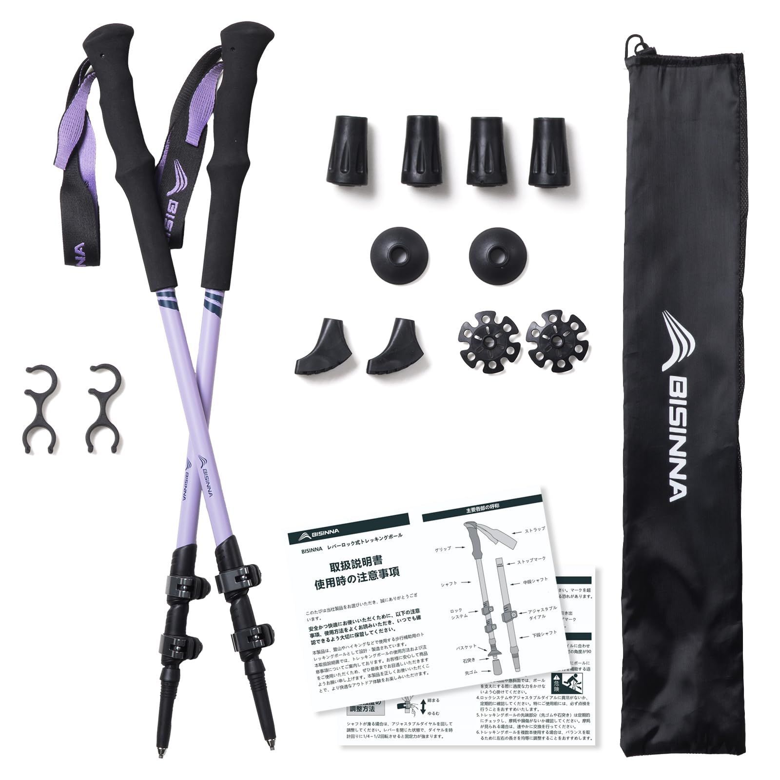 Color パープル BISINNAトレッキングポール カーボン 軽量 登山用ストック 2本セット コンパクト 長さ調整 ウォーキング アウトドア ハイキング