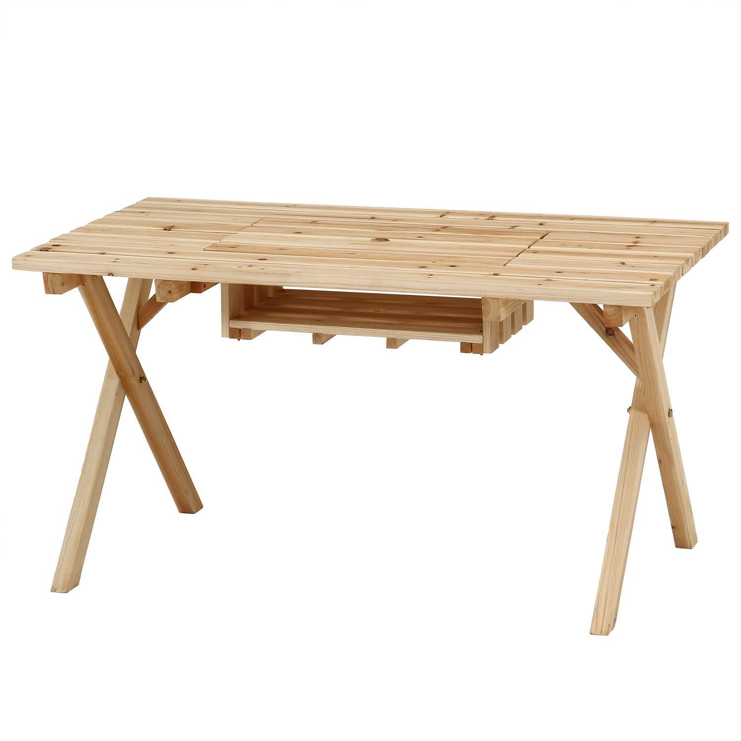 84524 杉材 パラソルホール付き コンロスペース付き 4人用 ナチュラル 幅120×奥行75×高さ65 cm BBQテーブル&ベンチセット ガーデンテーブルセット 不二貿易