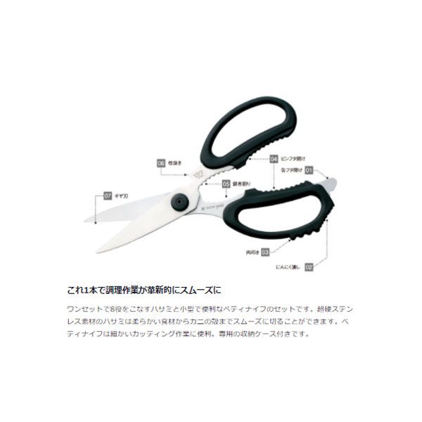 スノーピーク キッチンシザーズセット GK-100 役をこなすハサミとペティナイフのセット。