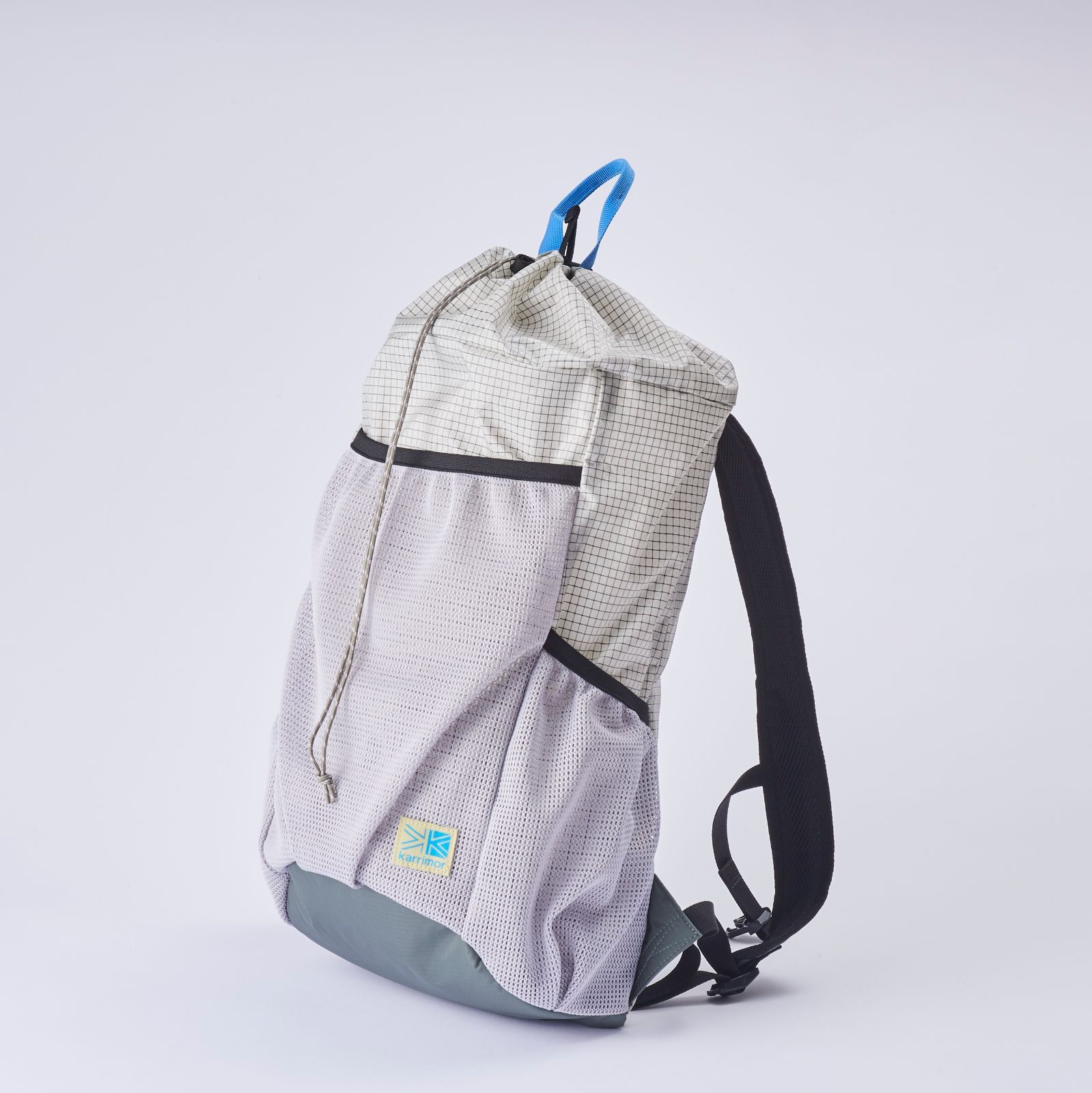 メッシュポケット、ハーネス、底部、トップハンドル、ドローコードなどを別注カラーに変更。夏の雲をイメージした白とグレーベースの配色に、トップハンドルにはコーディネートのワンポイントとなるような明るいブルーをセレクトしました。さらに、カリマーのブランドロゴのカラー変更やランドネのオリジナルロゴを配置するなど別注ポイントが盛りだくさん。