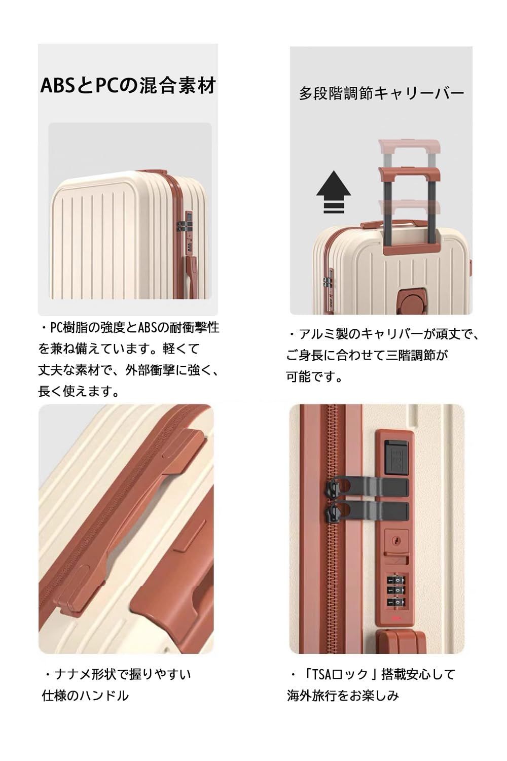 [WanderMore] 工場直売 スーツケース キャリーケース USBポート付き 機内持ち込み カップホルダー付き Lサイズ 6泊7日 ベージュ 80L キャリーバッグ 3段調節 泊まる かわいい オシャレ 軽量 学生 高校生 大学生 短期旅行 出張 大容量 多収納ポケット トランク 国内旅行 5カラー選ぶ