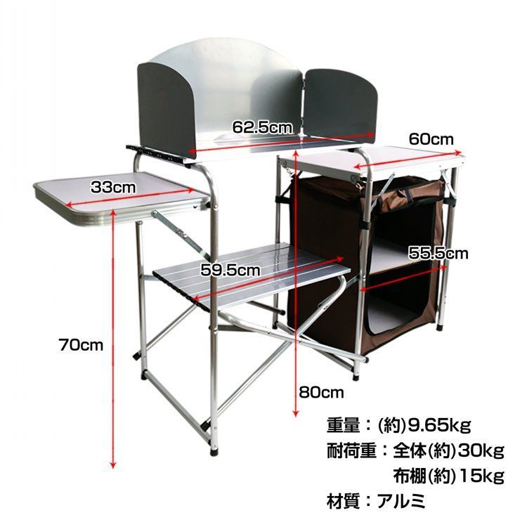 アウトドアテーブル アウトドアキッチンテーブル キャンプテーブル 調理台 折りたたみ 風防付き 耐荷重約30 kg 収納バッグ付き アルミ キャンプ バーベキュー BBQ od 338