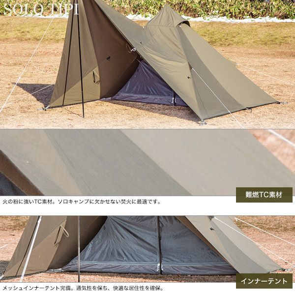 ソロティピーTC カーキ BUNDOK バンドック BDK-75 TC テント ソロ モノポールテント ワンポールテント ティピー型 コットン 綿 難燃 焚火 焚き火 ソロテント