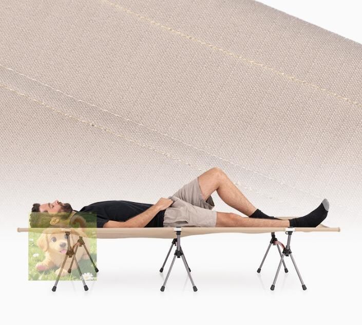 地面から距離をとることでどんな場所でも 凸凹を感じることなくいつでも快適に眠ることが可能になりマットで眠るのとはまた違うコットスタイルをお楽しみいただけます。