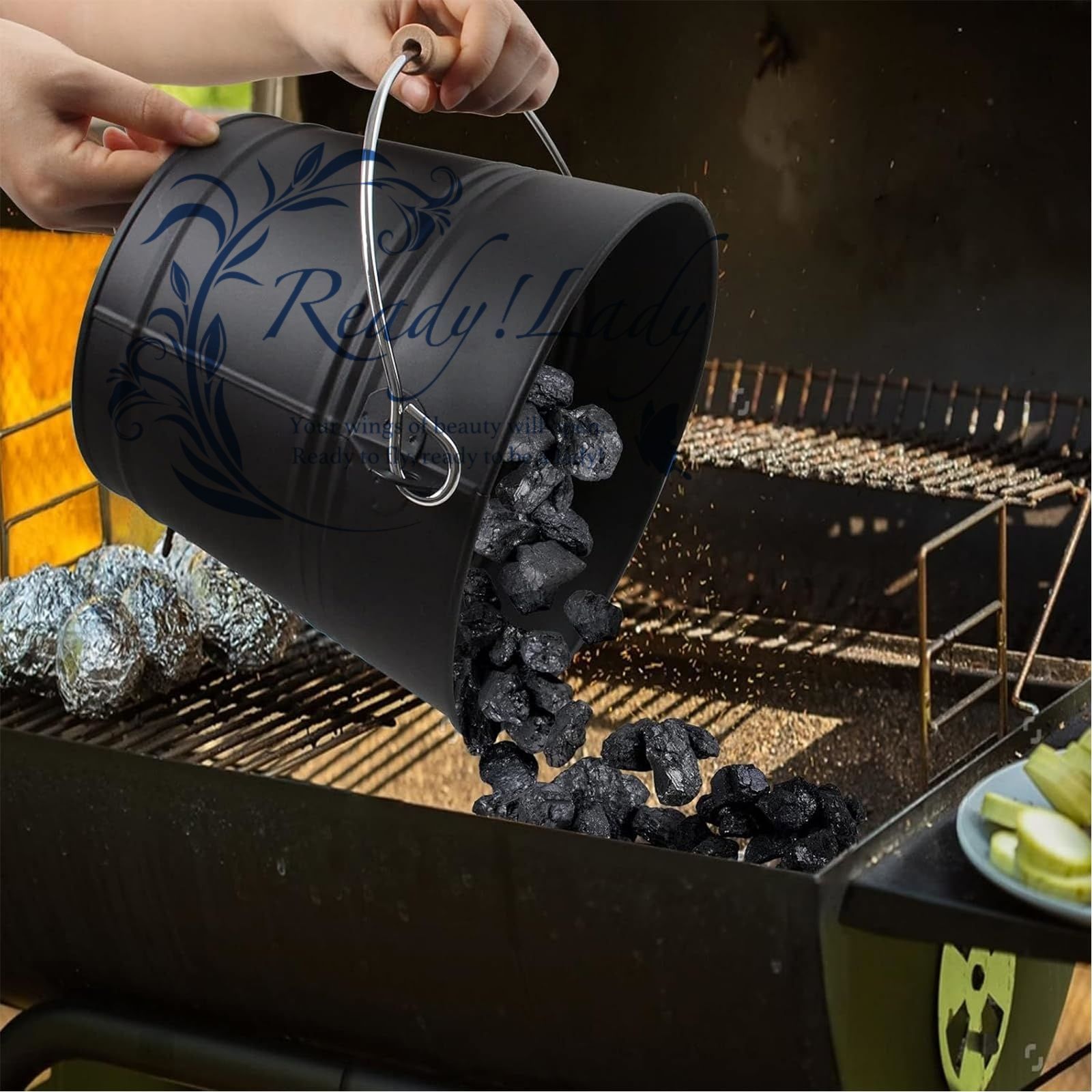 【持ち運びが容易】柔軟な木製ハンドルによりバケツを簡単に持ち上げることができ、手が火傷するのを防ぎます。支持脚が付いているため、高温の灰を地面から離して置くことができます。