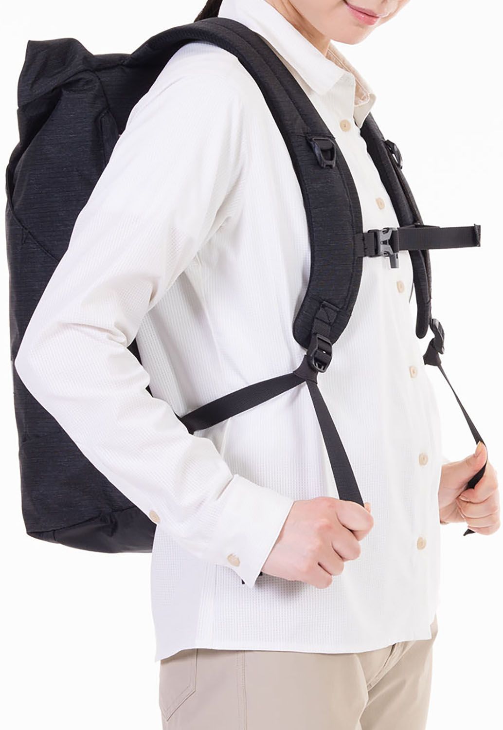 軽量・シンプルなのに収納豊富な、軽さと機能性のベストバランスタイプのバックパック。背面長とショルダーベルトのカーブなどは女性が背負ったときに最も快適になるような設計。きれいめデザインを保ちつつ、トップをドローコードとバックル留めにすることで天蓋やジッパーなどを省いて軽量化しています。それでいてタオルや上着なども入れておける大きなフロントポケット、両サイドには水筒などのはいる2つのポケット、小物や財布入れに便利なジッパーポケットをフロントとサイド、背面に備えるなど、16Lと大きすぎない容量ながらかさ張る荷物もしっかり整理できる収納を備えています。日常使いでも十分に活躍してくれるでしょう。
