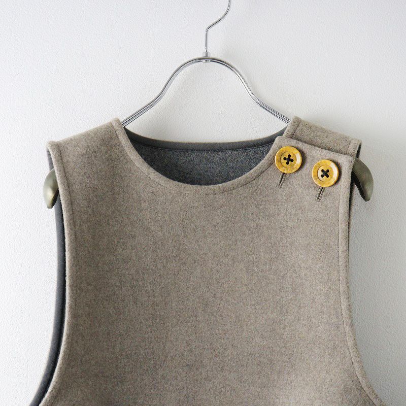 【品名】美品 2022AW エンフォルド ENFOLD VEST メルトン ショートベスト 38/ベージュ ノースリーブ 変形 ショルダーボタン
