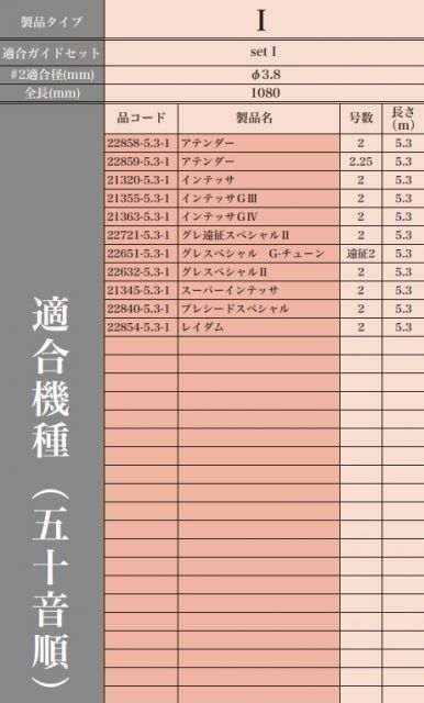A-Gタイプまで7種類をラインナップしていますので、穂先折れで眠っている名竿を蘇らせることができます。