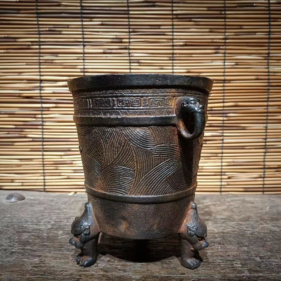 旧鉄器 鋳鉄ストーブ お茶を沸かす お湯を沸かす バーベキューストーブ 炭ストーブ 高さ約16 cmWP 商品929