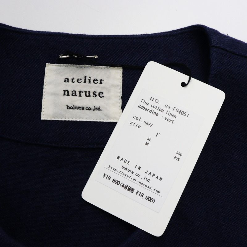 アトリエナルセ atelier naruse フラックス綿麻ギャバジンベスト F ネイビー ジレ 羽織り ノースリーブ 前開き