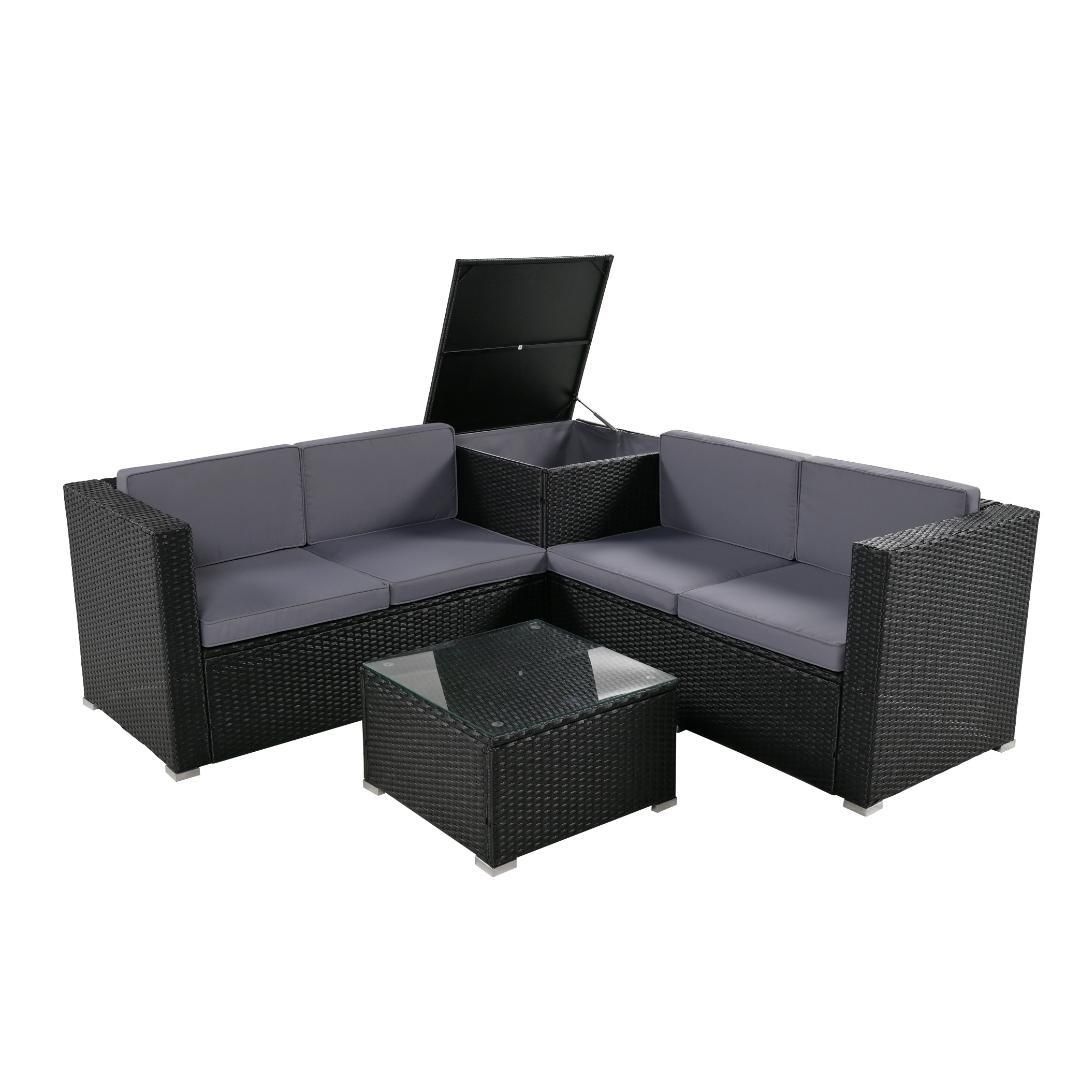 ガーデンファニチャー 4点 収納付き ガーデン クッション付き ラタン調 ソファ yew 4