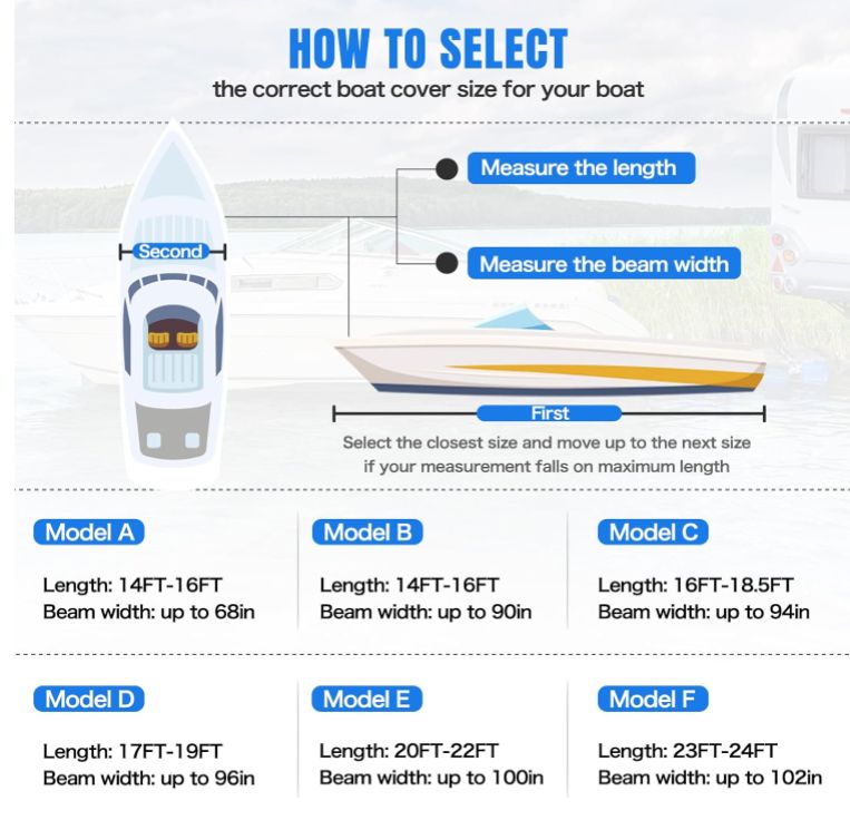 『23フィート-24フィートパッケージを含む』14 x 調節可能なトラップ、1 x 無料ストレージバッグ、1 x 1200D PUボートカバー (長さ:23フィート~24フィート、ビーム幅:最大102インチ)。 ボートカバーは、バスボート、釣りボート、Vハルトライハルランナバウト、ジョンボート、トレーラーボートなどに適合します。 この高耐久防水ボートカバーは、ボートの保管、係留、トレーラーに最適です。