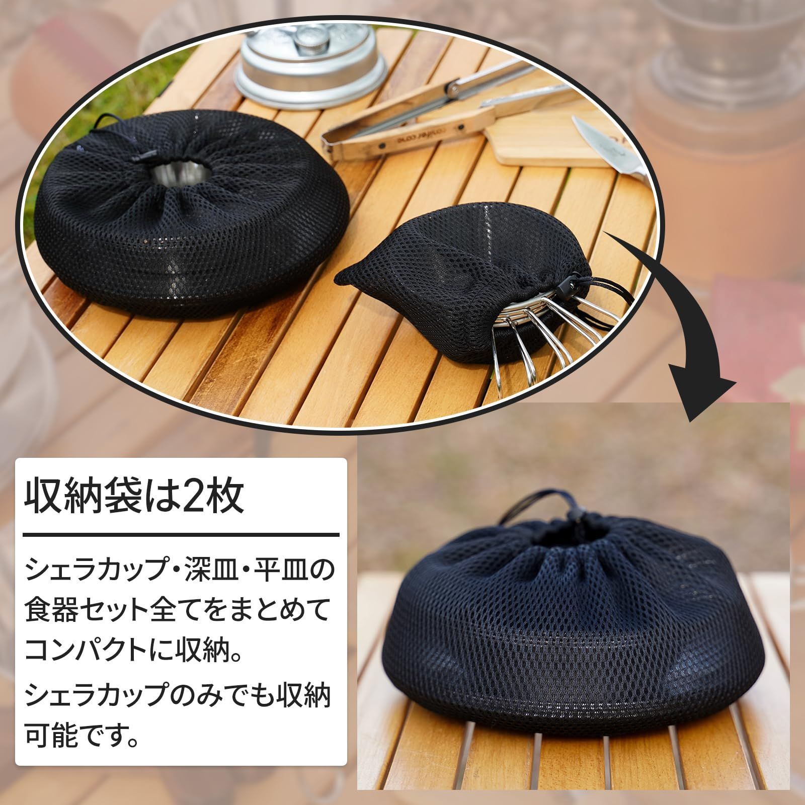 【コンパクト収納】スタッキングでき、セットの収納袋にひとまとめにできるためコンパクトに持ち運ぶことができます。
