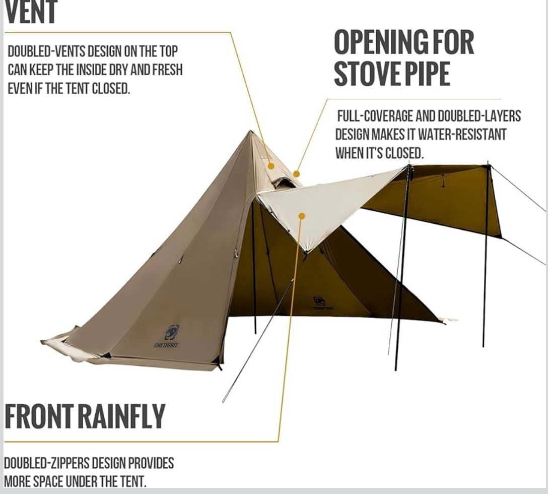 OneTigris Northgaze 2 4人用 軽量 ホットテント ストーブジャック付き 5ポンド 4シーズン 防水 防風 キャンプ バックパッキング ハイキング 狩猟 釣りに