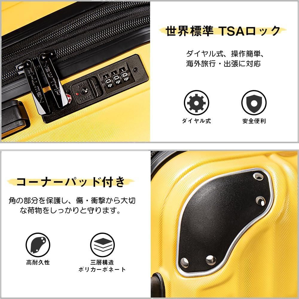 数量 大型 静音 耐衝撃 360度回転 超軽量 ダブルキャスター 拡張機能付き TSAローク キャリーバッグ ファスナータイプ キャリーケース 旅行 機内持ち込み ビジネス スーツケース 出張 Trip 入院 Sサイズ 1-3泊 機内持込 イエロー