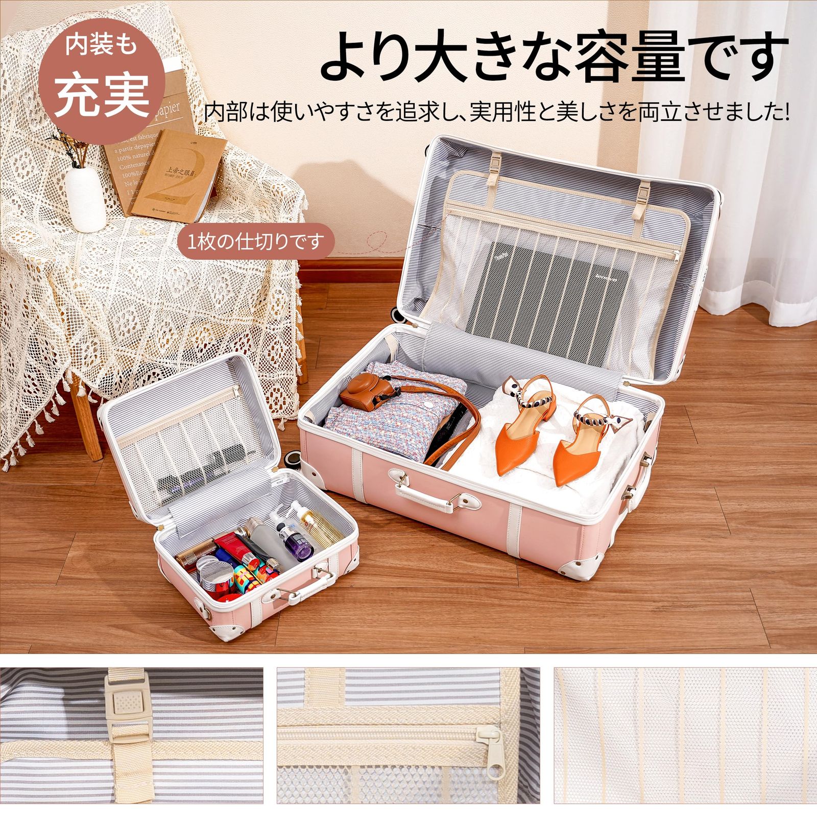 [NZBZ] スーツケース 手作り キャリーバッグ 軽量 トランクケース ア トランク おしゃれ かわいい キャリーバッグ 出張 修学旅行 TSAロック (ピンク, S(20) 型+XS(14) 型)