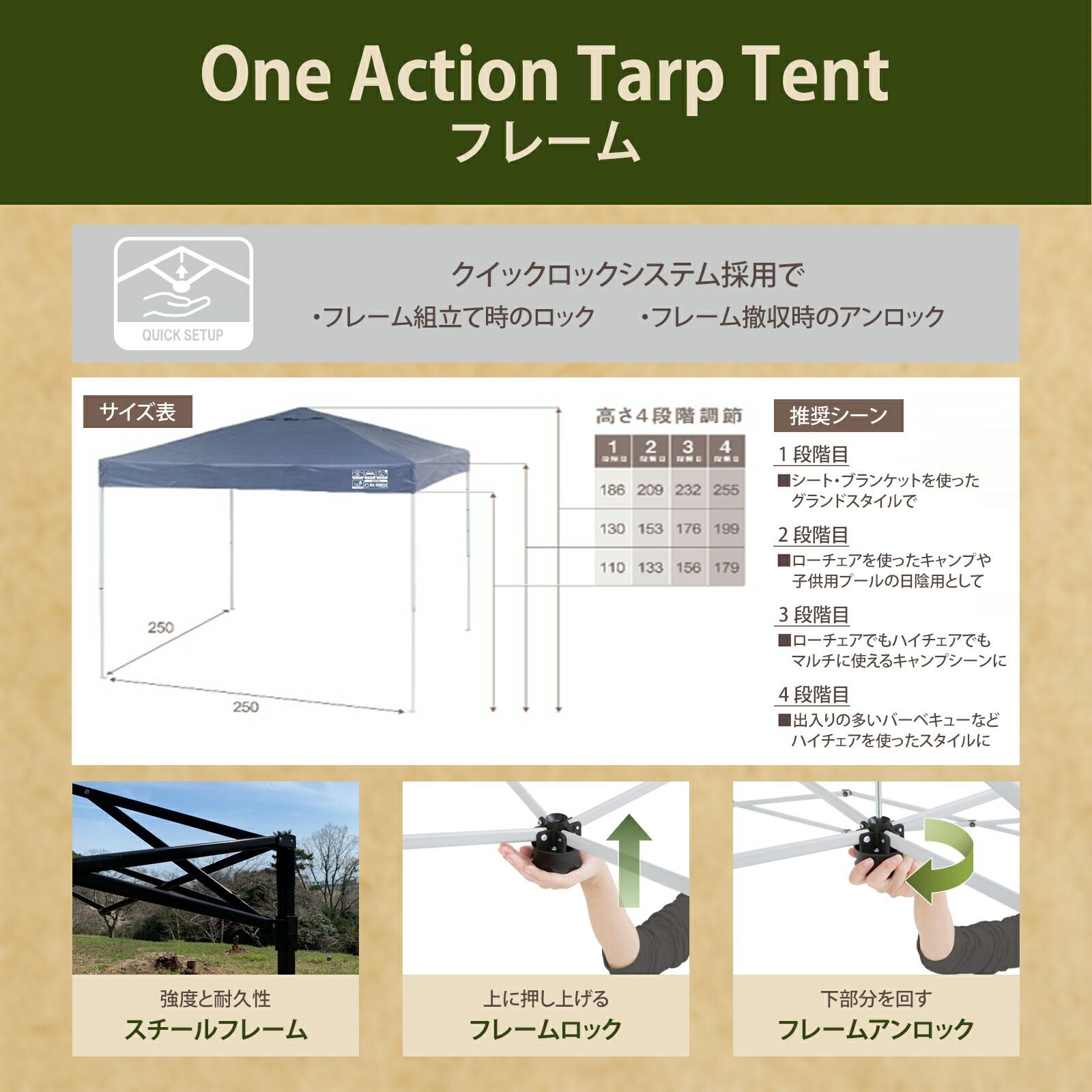 Re:SWELL 組立て簡単 !! ワンアクション タープテント スチールフレーム