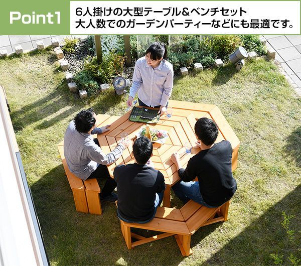 ●大人数でのガーデンパーティーなどにも対応した大型テーブル&ベンチ4点セット