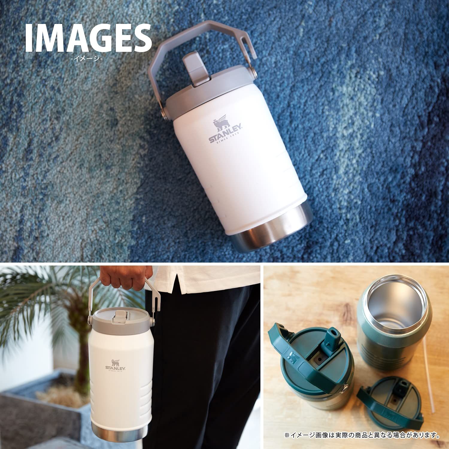 STANLEY スタンレー アイスフローフリップストロー 真空ジャグ 1.1 L ホワイト 氷入れ アイスペール アイスコンテナ 保冷 ストロー 直飲み 大容量 スポーツ アウトドア 蓋つき 水筒 ステンレスボトル 食洗器対応 保証 日本