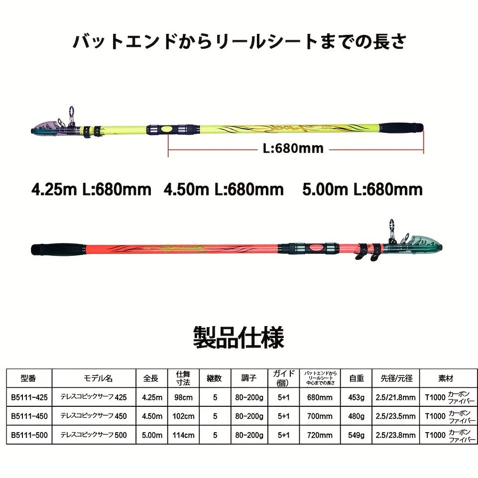 * 遠投性能:4.25m以上の長さで、沖合のポイントも射程圏内。