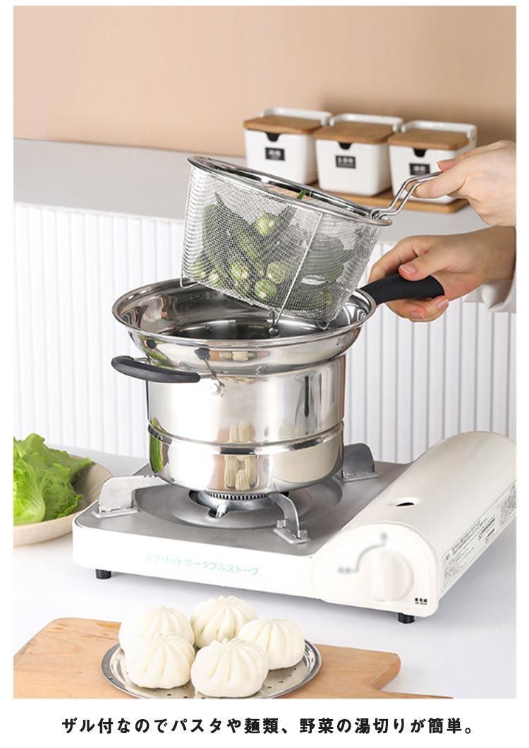 パスタ鍋 22 cm 3点セット IH対応 ザル付 ガス火 直火対応 パスタポット そうめん鍋 万能鍋 ガラス蓋 両手鍋 深型 片手鍋 湯切り ザル付き ステンレス鍋 煮る 揚げる 沸かす キ kongban 349