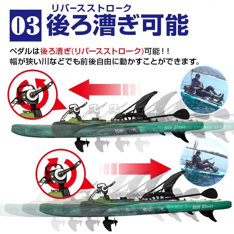 ■ペダルは後ろ漕ぎが可能!狭い川などでも楽々移動ができます!
