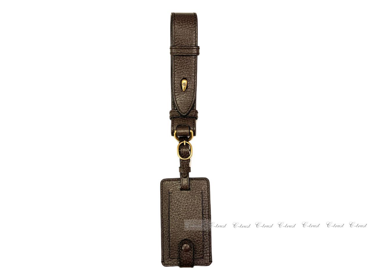 GUCCI グッチ ネームタグ 荷物タグ カード入れ ラゲッジタグ ベルト ストラップ レザー トラベル ロゴ イタリア製 ブラウン L 031