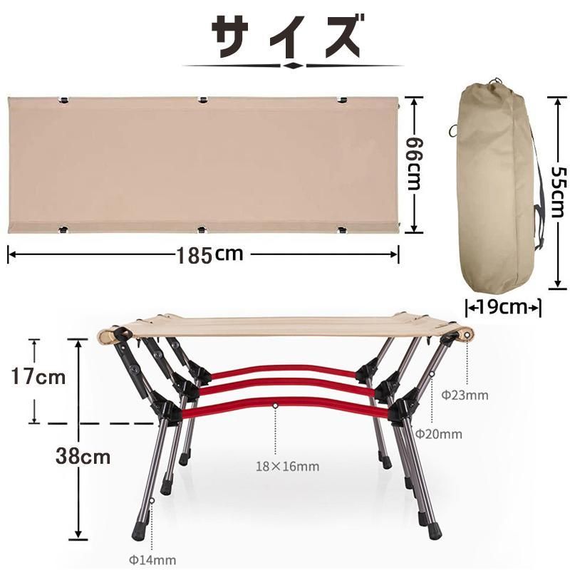 キャンプ用ベッド アウトドアコット耐荷重150 KG 収納バッグ付き BBQ 簡易ベッド ソロキャンプ オフィス 撥水生地 組立簡単 2 WAY 高低兼用 アウトドア 軽量