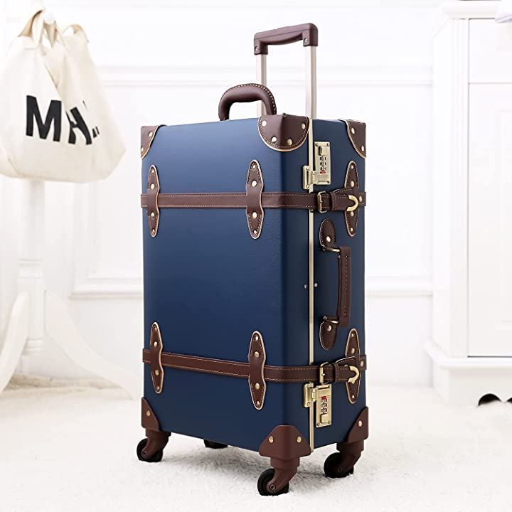 urecity トランクケース キャリーバッグ 革 手作り 復古主義 レトロ おしゃれ かわいい 超軽量 旅行 出張 大容量 静音四輪 Lサイズ 24 49 L ロイヤルブルー