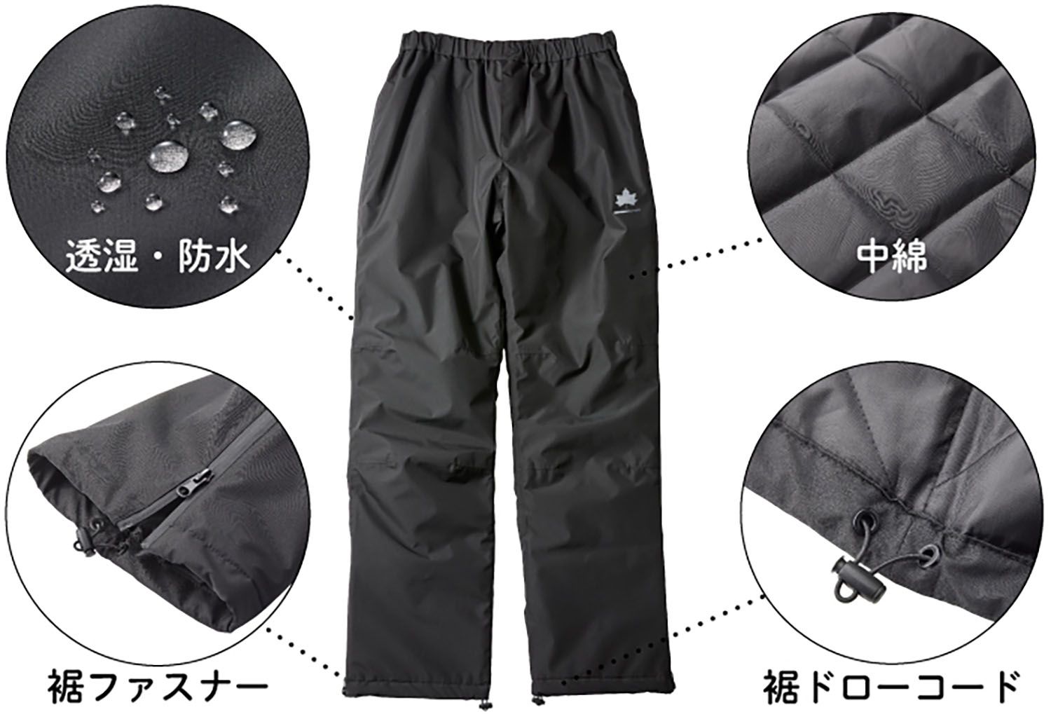 特徴: 雨・雪に強い防水性。ムレを軽減し快適。縫い目はシームテープ処理で水の侵入を防止。アウトドア、街でも着用できるデザイン。レイヤリングしやすい軽量中綿仕様。裾ファスナーやフード・袖口は調節可能で風を防ぐ。