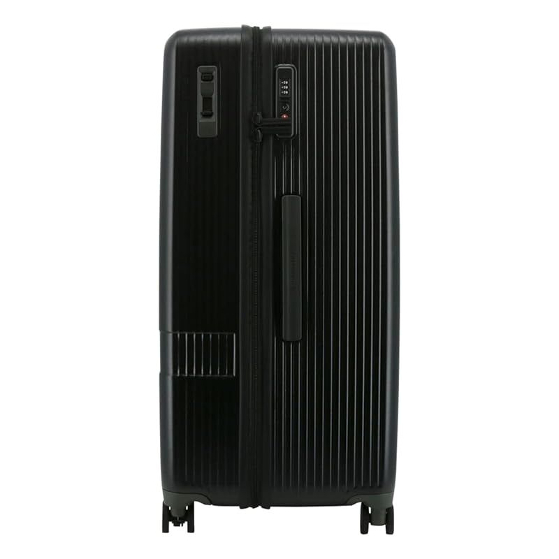 仕様:ダブルファスナー式開閉 内側:片面ラウンドファスナー式x2(セパレート収納)片面ラウンドファスナー式(クロスベルト) TSAダイヤルロック 消音キャスター ブレーキシステム ボトムハンドル 外付けキャリーバー レクタ形状