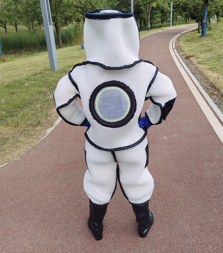 ◎このスズメバチ服は通気性のあるナイロン素材で扇風機(バッテリーが付きません)が付属しているため、通気性が高く放熱性に優れています。