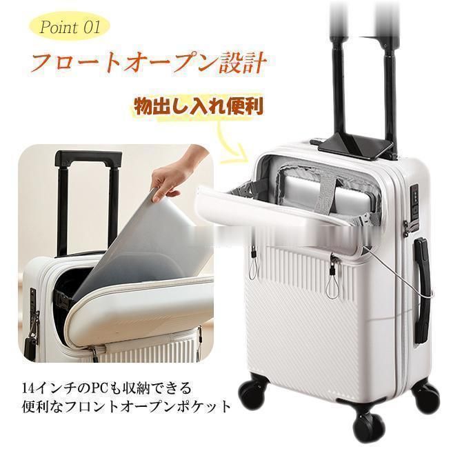 スーツケース 38 L 機内持ち込み 前開き フロントオープン 軽量 USB充電 キャリーケース カップホルダー 多収納ポケット 旅行