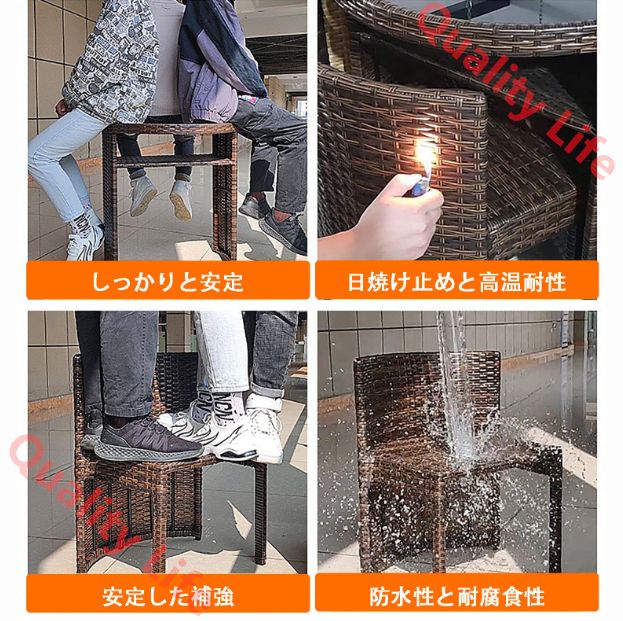 ラタン調 テーブル-チェア3点セット 人工ラタンガーデンチェア 3点セット アウトドアテーブル 3点ガーデンチェア テーブル収納 ガーデンテーブルと椅子 ホテルカフェ ベランダ テラス 屋外家具 四角 コーヒーの色