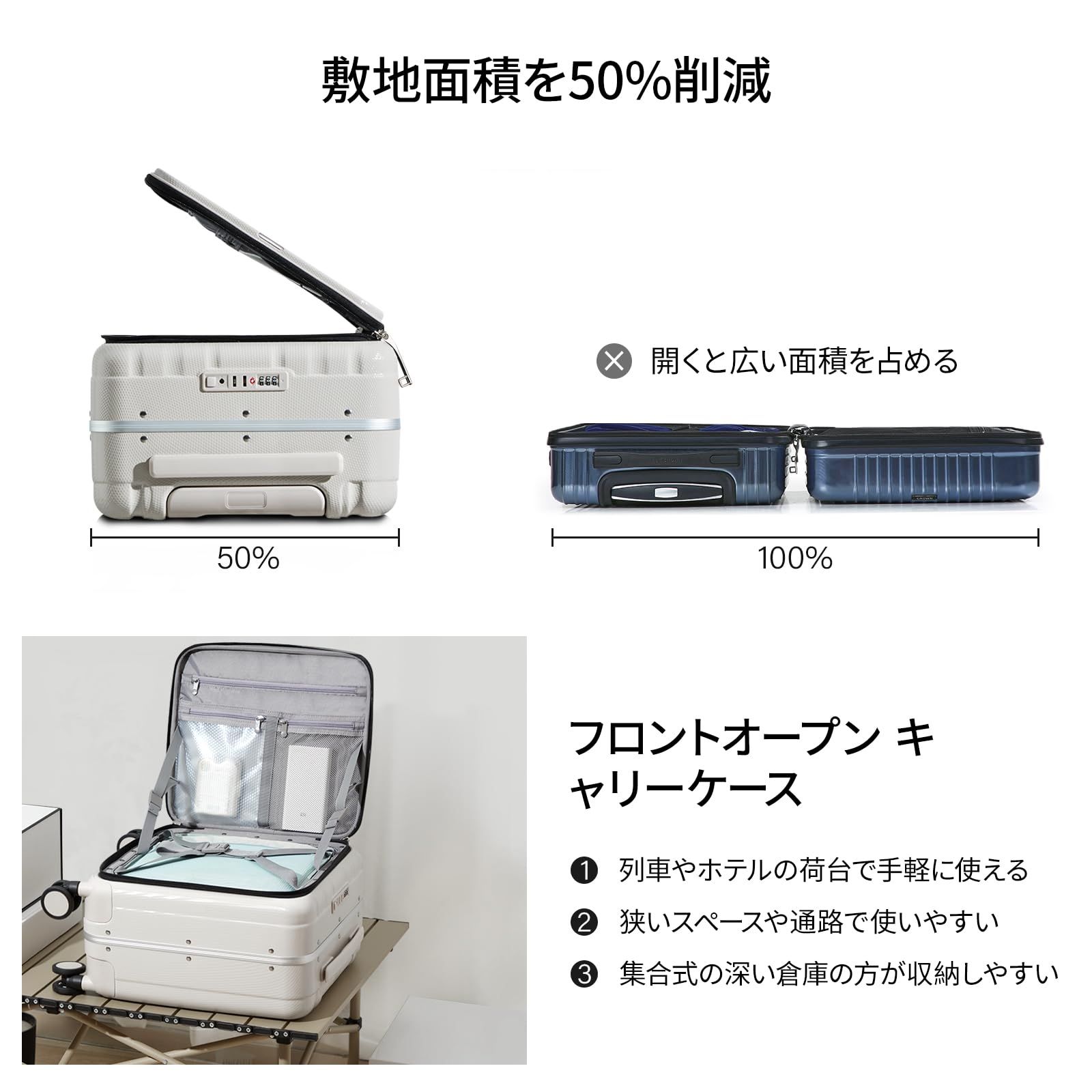 【敷地面積を50%削減】伝統的なスーツケースは完全に開けてから使用することができ、敷地面積が広く、Hanke片面にスーツケースを開けるには50%の敷地面積しか必要なく、狭い空間でも通路でも簡単に使用することができます。