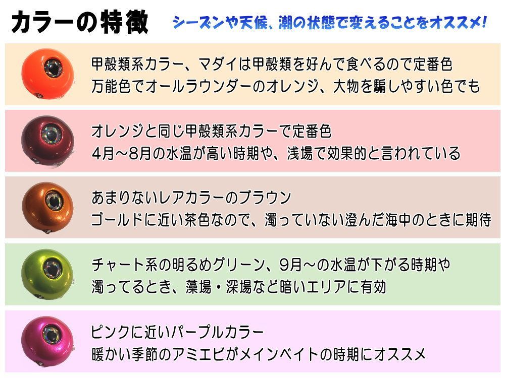 臨機応変に対応するためにタイラバヘッドのカラーチェンジは
