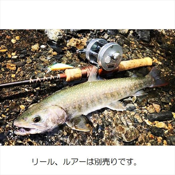全長5.3ft(162cm) 仕舞寸法57cm 3PCウエイト 90g ルアーウェイト:2-10g フェングラス渓流ベイトフィネスロッド軽量なUDグラスを使用した渓流ベイトフィネスロッド。グラスファイバーですがアクションは全体的に張りを出し、シンキングミノーの操作性も良好です。一方、ティップは操作性を犠牲にしないぎりぎりまでソフトに仕上げ、ティップアクションながらも、渓流で多用するサイドキャストやフリップキャストやスパイラルキャストがしやすい設定で、食い込みも抜群です。UDグラスはグラスの特有のバラシにくさと粘りを発揮しながら感度も良好。バットは強めに設定してあるので、北海道やダム差し、本流差しの大物相手にも十分に対応出来ます。3ピースで仕舞寸法57cmですので、航空会社にもよりますが機内持ち込みバッグに斜めにして持ち込めるでしょう。フェルールは、白ペグのスピゴットタイプ。リールシートはウッド。アルミ製トリガー&リング&スクリューの仕様です。ロッドエンドはコルクの表面をエポキシコーティングしてあるので軽量ながら堅牢な仕上げ。ティップ付近のガイドはサイズ4のステンレスSICフィネスガイド設定。トップガイド以外はKガイドを使用。ブラウンカラーブランクスでバットにクロスラッピングのオールドコスメ。※装着できないリールもありますのでご確認ください。小型アンバサダー、カルカッタコンクエストBFS、アルファス、五十鈴工業BCなどは装着可能。※掲載している商品の画像は代表画像を表示しています。また実物と色が違って見える場合があります。あらかじめご了承下さい。