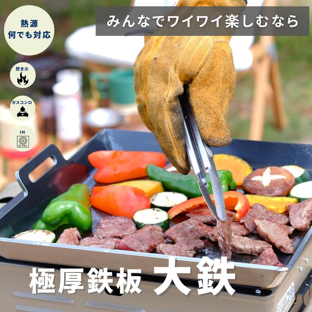 Libelle 極厚 鉄板 4.5㎜ キャンプ バーベキュー アウトドア グリル プレート 黒皮 ふち有 直火 ガスコンロ IH 日本製 (大型)