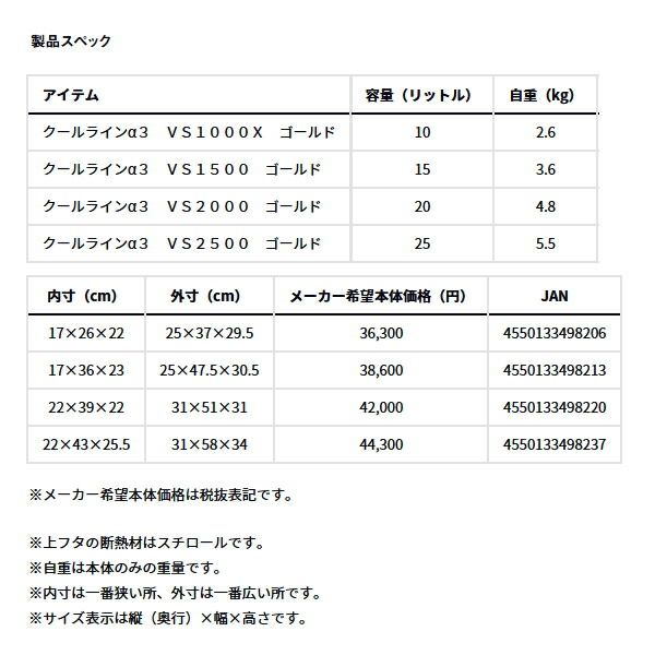 ≪ 24年 新商品 ≫ ダイワ クールライン α 3 VS 2500 ゴールド 25 L